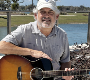 A solo guitarist and singer performing classic country music with a tropical feel.